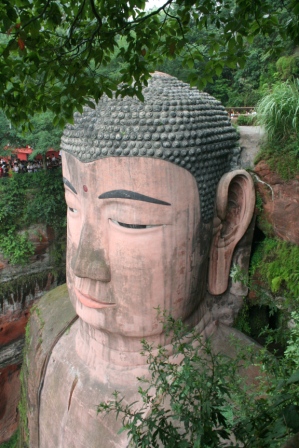 Dafó is het standbeeld van een zittende boeddha en het is helemaal uitgehakt uit de rotsen. Het beeld is 71 meter hoog en zou daarmee de grootste boeddha ter wereld moeten zijn. Het 14,7 meter grote hoofd hebben we van dichtbij gezien. Voor de rest van het beeld moest je langs het beeld met de trap naar beneden. De wachttijd voor die trap was ongeveer drie uur. Daar hadden we dus geen zin in (en tijd voor) en daarom hebben we maar een boottochtje op de rivier gemaakt. Daarbij werd er enkele keren vlak langs het beeld gevaren zodat je er toch mooie foto’s van kon maken.