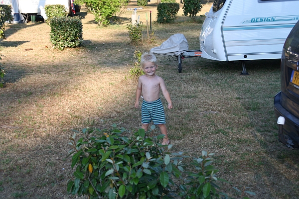 Na dit gespeel met water was het tijd om de auto weer op te zoeken. In de parkeergarage kreeg Luuk eerst een droge broek aan en daarna konden we beginnen aan de terugreis. Omdat we op de heenweg al gezien hadden dat het de andere kant op nog veel drukker was, hebben we voor een alternatieve route gekozen. Via de Route National schoot het echter heel goed op en om half vijf waren we dan ook weer terug op de camping. Daar was het ondertussen behoorlijk opgeklaard en konden we nog lekker een uurtje in de zon zitten. Daarna werden er lekker hamburgers gegrild en na de gebruikelijke avondrituelen liggen Luuk en Evi nu lekker te slapen. We hopen dat dat de rest van de nacht zo blijft.