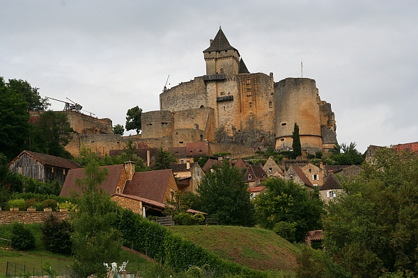 Rond het middaguur begon het flink te betrekken en dit leidde er toe dat het het grootste deel van de middag regenachtig is geweest. Het regende meestal niet heel hard en het was ook niet koud. We konden dus nog best wat ondernemen. We zijn met de auto naar het Château de Castelnaud gereden. Dit is een twaalfde-eeuws kasteel met daarin een museum over oorlogsvoering in de middeleeuwen.