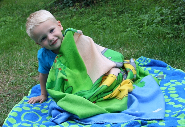 Het ontbijt hebben we lekker in het zonnetje genuttigd. Het was helaas wel maar van korte duur want na een uurtje trok het helemaal dicht en leek het flink te gaan regenen. Dit gebeurde echter niet en weer een uurtje later klaarde het weer helemaal op en is het de rest van de dag verder schitterend zomerweer geweest. In de zon was het zo warm dat we voornamelijk in de schaduw gebleven zijn. Evi heeft onder de zonneluifel liggen slapen en Luuk heeft vooral binnen gespeeld met zijn auto’s en treintjes. Ook heeft hij buiten in een bak met water met zijn eendjes gespeeld. Verder wilde hij kleuren. Hij heeft zich echter voornamelijk bezig gehouden met het kleuren van zijn benen. Gelukkig zijn de stiften gemakkelijk afwasbaar.