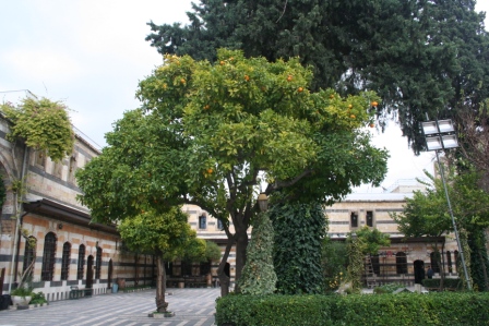 Vandaag maakten we kennis met de groepsleden die alleen het Syrië-deel van de reis meemaakten. Ook Marcella, die eerst een weekje door Libanon had gereisd, sloot zich nu bij de groep aan. Na het ontbijt gingen we met Hicham op pad voor een stadswandeling door het oude Damascus. De eerste stop was bij het oude treinstation in de buurt van ons hotel. Daarna zijn we via de overdekte soek naar de Omajjaden moskee gewandeld. Deze moskee is één van de belangrijksten van de islam. Alleen de moskeeën van Medina en Mekka zijn belangrijker. Voor we naar binnen mochten, moesten de dames zich eerst bedekken met een lang gewaad met puntmuts.