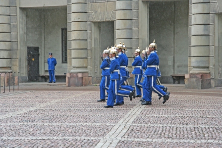 Na een klein uurtje waren waren we precies op tijd buiten voor de wisseling van de wacht. Onder begeleiding van een muziekkorps en onder het toeziend oog van vele toeschouwers werd de ceremonie uitgevoerd. Het geheel werd alleen ontsierd door de eerste regenbui van de dag. Dit buitje duurde overigens tot ongeveer vijf uur.