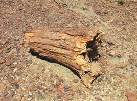Tijdens de wandeling van anderhalve kilometer die we gemaakt hebben, hebben we vele tientallen stukken versteend hout zien liggen. Uit de zandbodem zag je op plaatsen ook al stukken hout tevoorschijn komen die over een aantal jaren door erosie helemaal zullen zijn blootgelegd. Wat heel opvallend was, waren de miljoenen houtsnippers die overal op de grond lagen. Het leek alsof de houthakkers net weg waren.