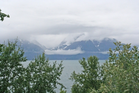 Omdat we het wel een beetje gezien hadden, zijn we terug gereden nar Skarsvåg en hebben daar een camping opgezocht. Deze meest noordelijke camping ter wereld lag best mooi aan een meertje maar het was er niet erg aangenaam. Het was mistig en winderig dus was er niet veel te genieten. Na het opzetten van de tent hebben we nog een wandelingetje gemaakt naar Kirkeporten. In dit meest noordelijke vissersdorpje van de wereld hadden we het echter snel gezien. Tegen de avond begon de temperatuur langzaam te zakken. Na het eten was het nog zo'n negen graden. In de hoop nog een sprankje middernachtszon mee te te krijgen, zijn we toen nog maar eens terug gereden naar de Noordkaap. Helaas was hier de mist nog steeds ondoordringbaar. Het was er wel aanzienlijk drukker dan toen we er 's middags waren. Er stonden wel vijftien touringcars met Duitse, Nederlandse, Spaanse, Franse en Finse pensionado's. Ondanks deze drukte hebben we toch nog onze kaarten op de post kunnen doen en hebben we de film in de supervideograaf bekeken. Deze panoramafilm op 125° grootbeeldscherm was er mooi. De beelden vanuit vogelperspectief waren zo levensecht dat Petra er reisziek van werd. Toen we weer wat waren opgewarmd, zijn we terug gegaan naar de camping waar we meteen de slaapzak ingedoken zijn.